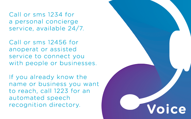 It also connects calls to your business, via Voice Services; TelstraDirectory Assistance 1223, Call Connect 12456 and 1234.